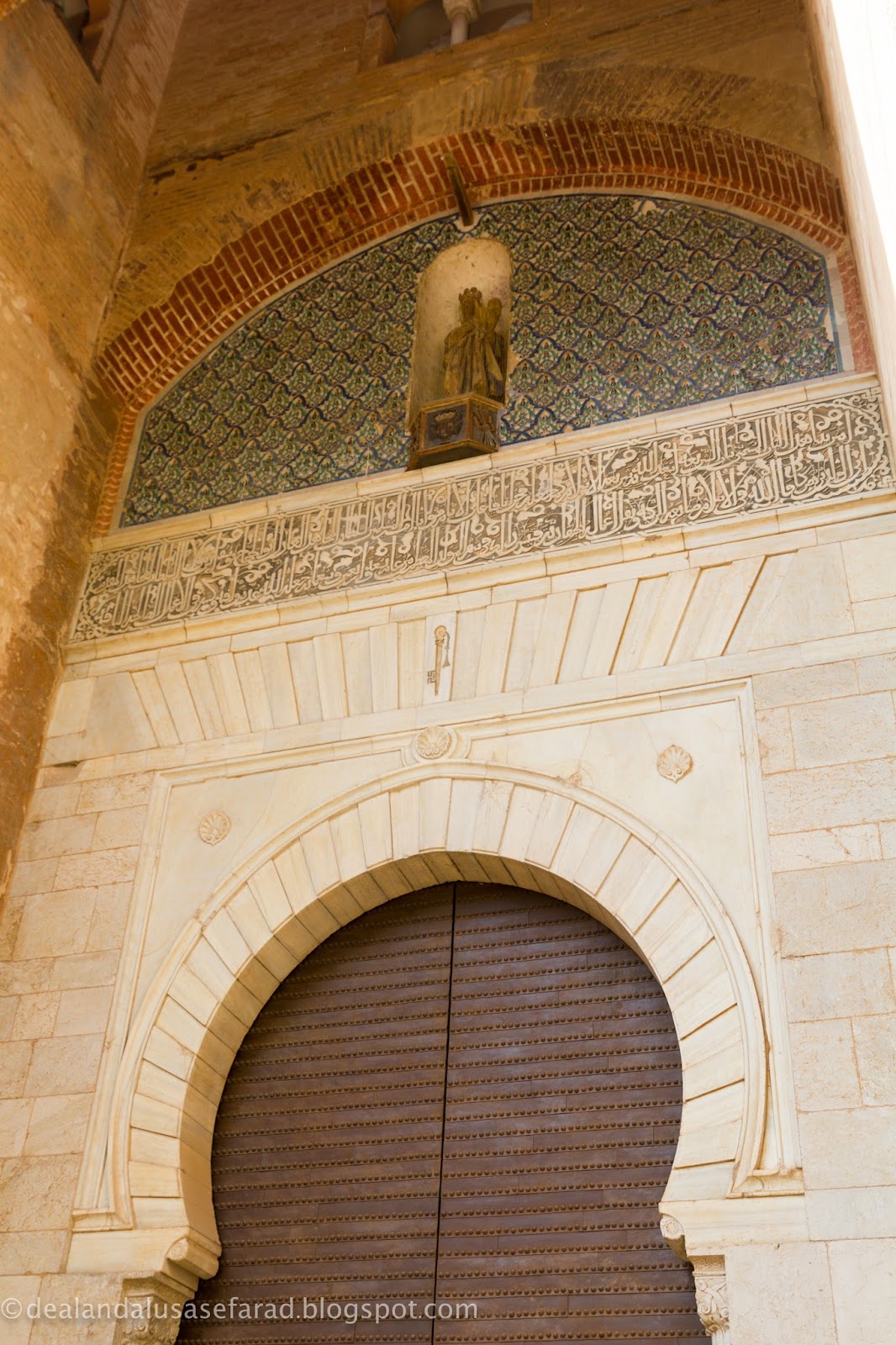 Nuestro señor el emir de los muslimes, el sultán justo y guerrero Abu l-Hayyay Yusuf, hijo de nuestro señor el sultán venerado y guerrero Abu al-Walid an-Nasr - ¡ premia Dios en el Islam sus acciones purificadoras y acepte sus hechos de armas. Y esto pudo concluir en el mes de Mulud el engrandecido año 749. ¡ Hágala Dios una potencia defensora y escribala entre las acciones buenas e inmortales!"